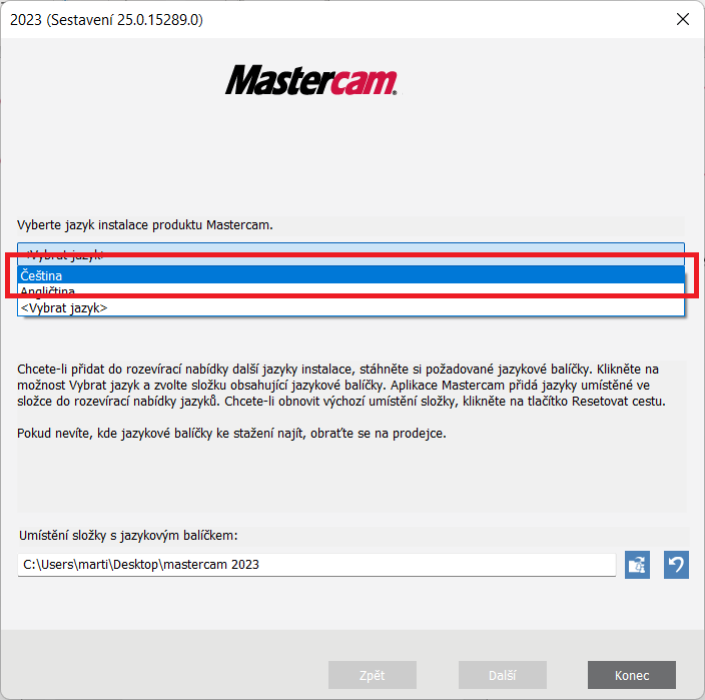 Instalaci češtiny musíme provést již při samotné instalaci softwaru. Pro instalaci Mastercamu v češtině potřebujeme 2 soubory: